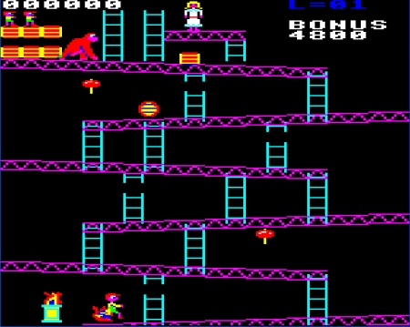 For some reason, in the Program Power (later Micro Power) version, they felt the need to replace Mario with a stick man. Quite how they felt this would fool Nintendo I don’t know, as in every other way this game was a carbon copy of the arcade game. The levels were recreated perfectly, and even had the “How high can you try?” message between stages.