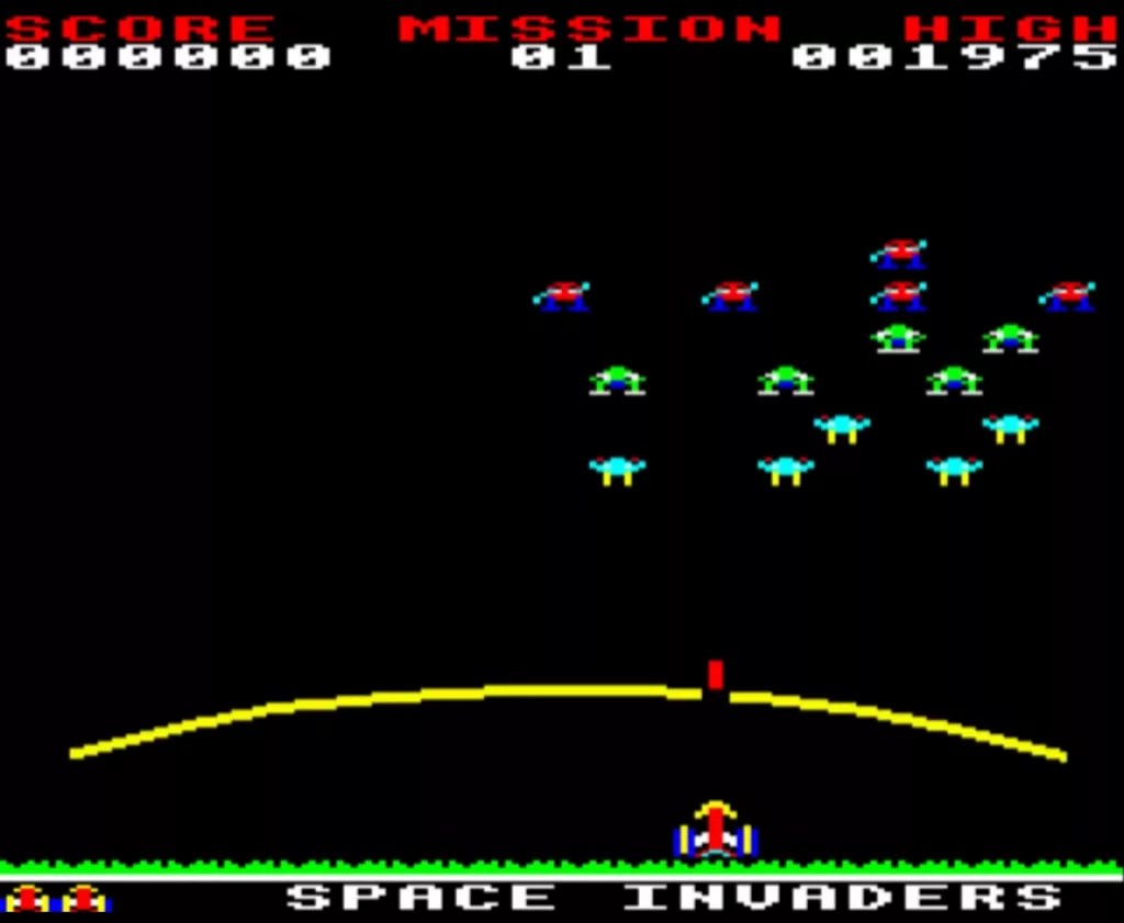 Unlike the original Galaxians, you have a small advantage in being able to move a small distance vertically, which was often handy when avoiding the swooping alien ships.